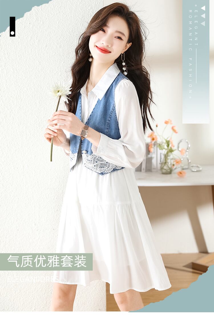 2022 女性 2 ピースドレスセット秋の甘いミニシャツドレス + ジャンベストスタイルの服スーツ 大人ガーリー スウィート キュート カジュアル オータム 秋物