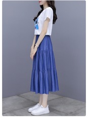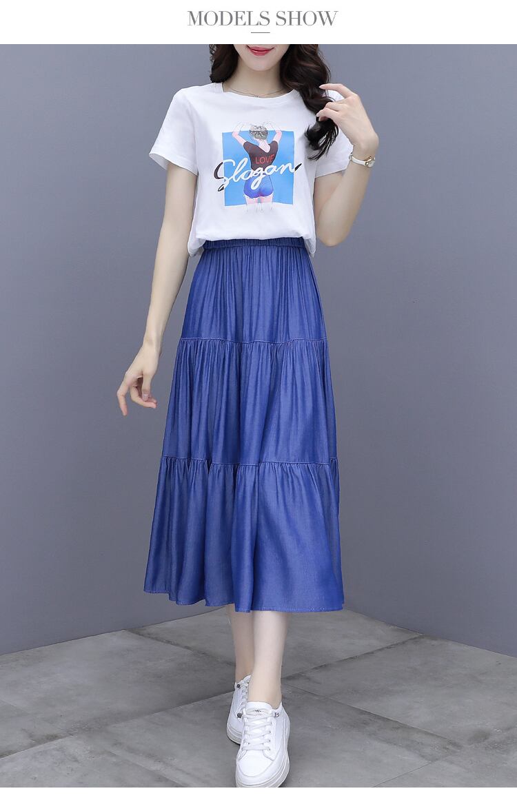 プリント 半袖 トップス デニム スカート スーツ トレンド 年齢 引き締め ツーピース 展開 チュチュ スカート 2点セット 衣装 パニエ ペチコート