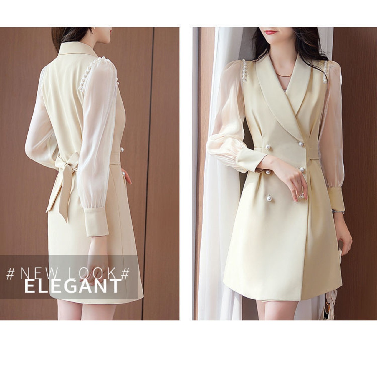 秋オフィスダブルブレストスーツドレスターンダウン襟パッチワークスリムウエストミニドレス Vestidos オータム 秋物 会社 学校 通勤や通学にも