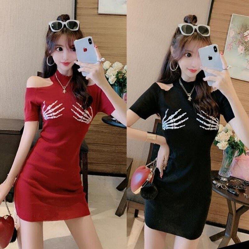 半袖オフショルダーニットミニドレス女性の夏のハーフネックプリントボディコンセクシーな年パーティー赤いドレス ショート レッド ハーフスリーブ サマー 夏物