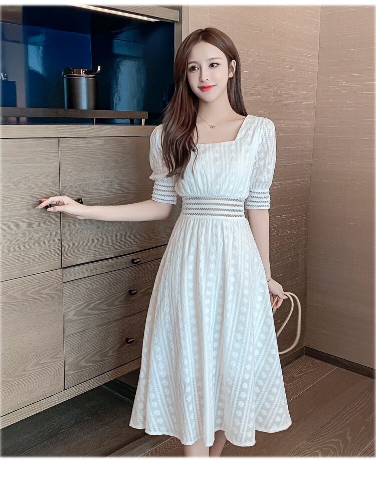 2022 サマードレスレーススクエアカラー中空アウトドレス女性自由奔放に生きるロングスクエアネックドレス女性パーティー 夏物 スクウェア