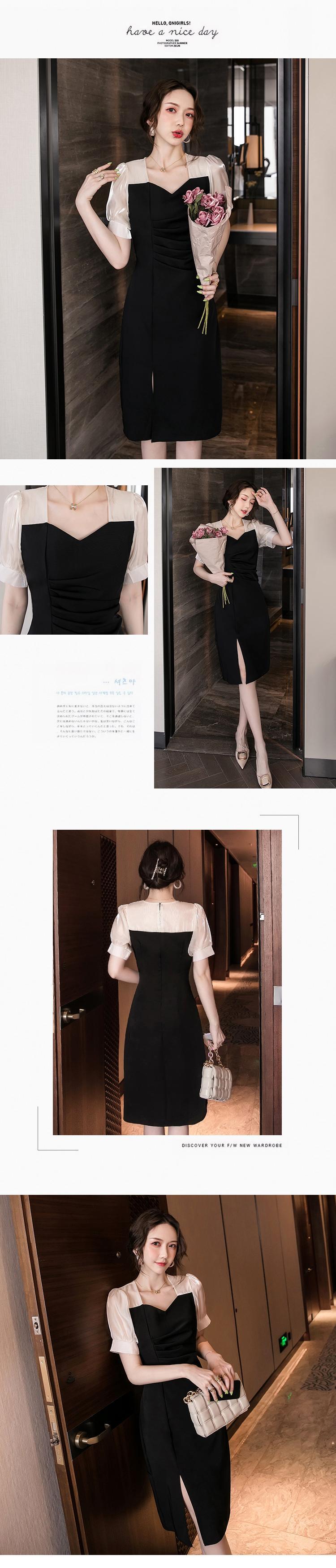 フレンチスプリットミニドレス女性の夏のパフスリーブパッチワーク倍スリムウエストストリートパーティードレス サマー 夏物