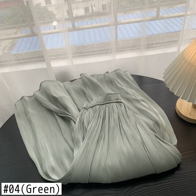 2022 夏ソリッドミディプリーツスカートの女性のウエスト春夏サテンマキシスカート スプリング 春物 サマー 夏物 ソリッドカラー