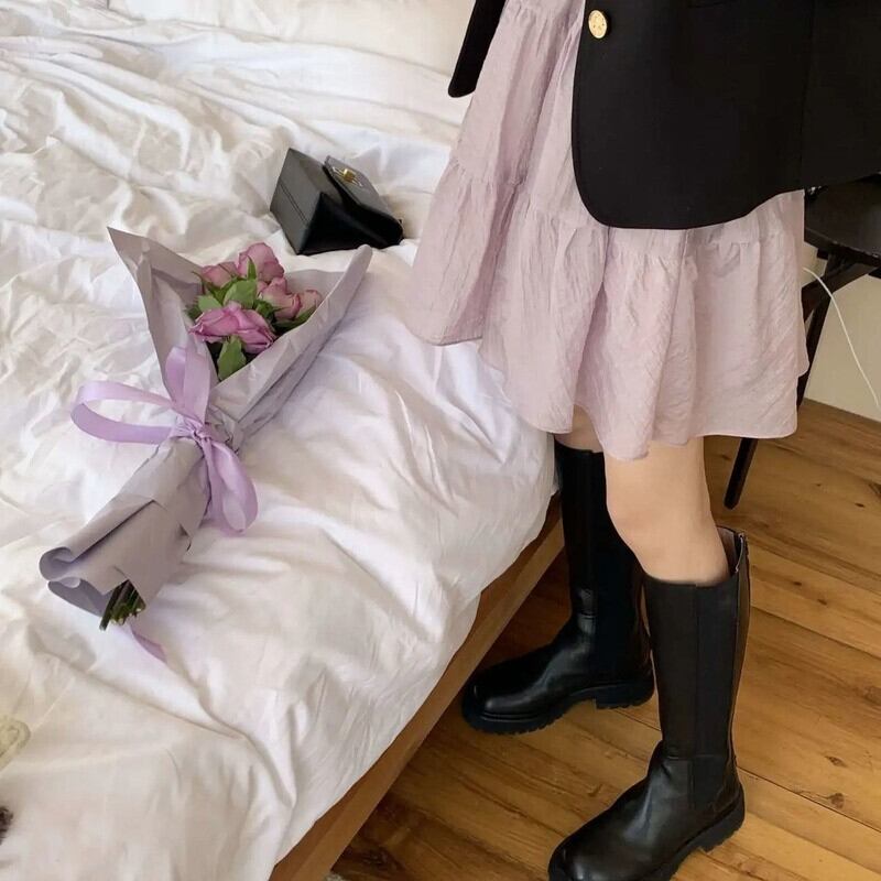 2022 夏と秋パープル長袖無地ドレスリップルテクスチャーウエストドレス女性 Vestido ロング サマー 夏物 オータム 秋物 ソリッドカラー