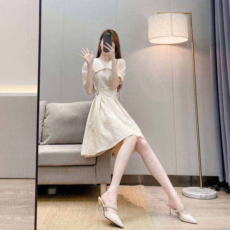 2023 春と夏の女性の V ラペルウエストドレスシックなシフォンプリーツ A ラインドレス vestidos デ verano mujer スプリング 春物 サマー 夏物 Aライン