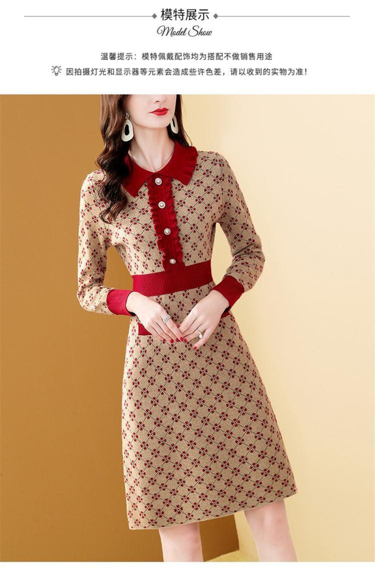 ニットドレス女性の 2023 秋と冬のオールマッチドールカラー痩身プリントミッドレングスセータードレス オータム 秋物 ウィンター 冬物