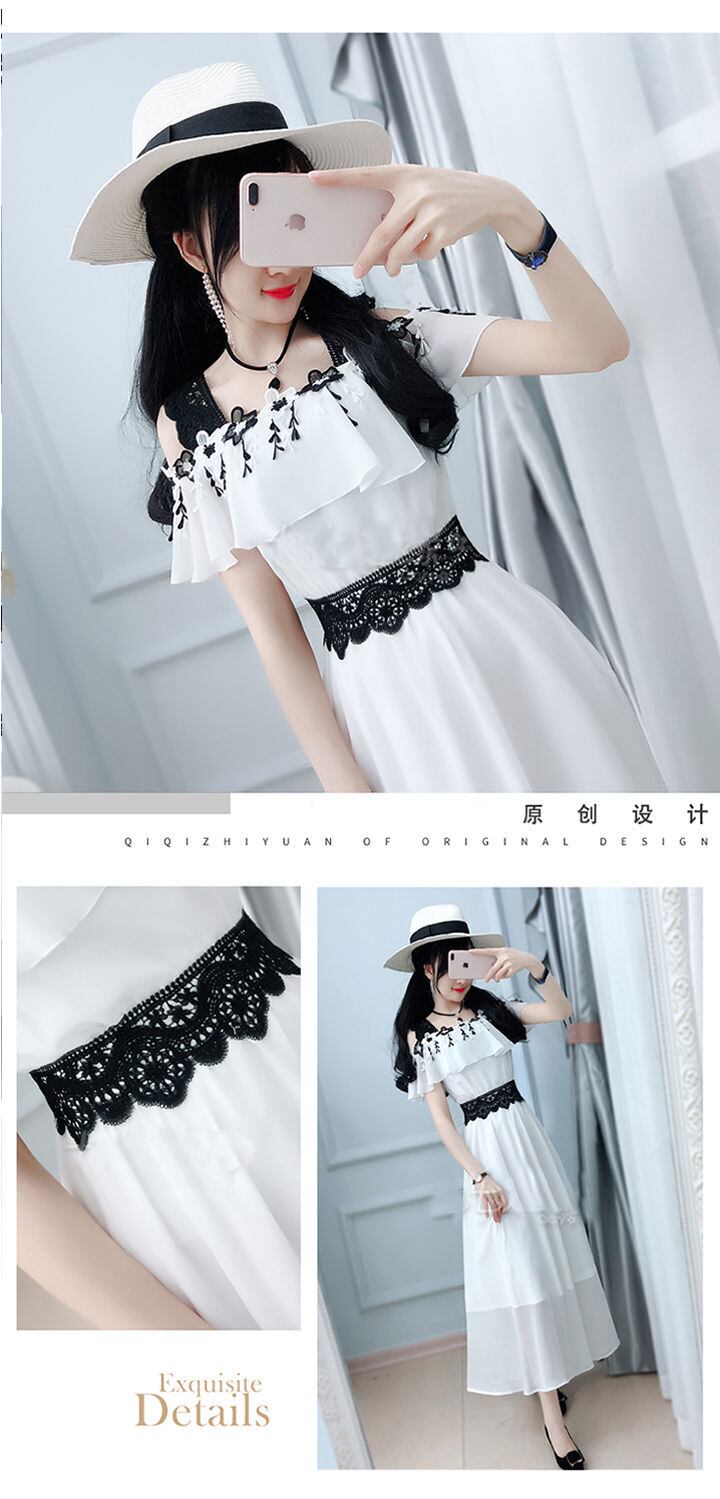 女性の刺繍ドレス夏スリム夏ホワイト ステッチ ブラック レース オフショルダー ドレス レッド サマー 夏物