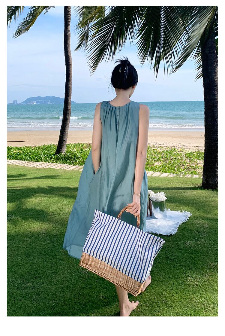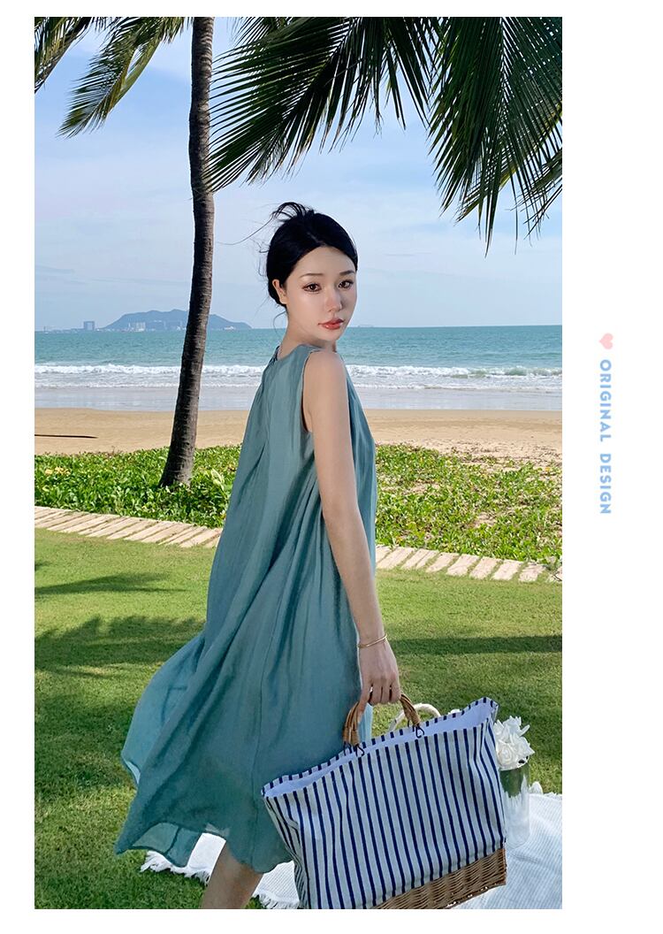 Y2K 茶豆グリーンオフショルダーノースリーブドレス女性海辺の休暇年齢削減サスペンダースカート夏サンドレス サマー 夏物