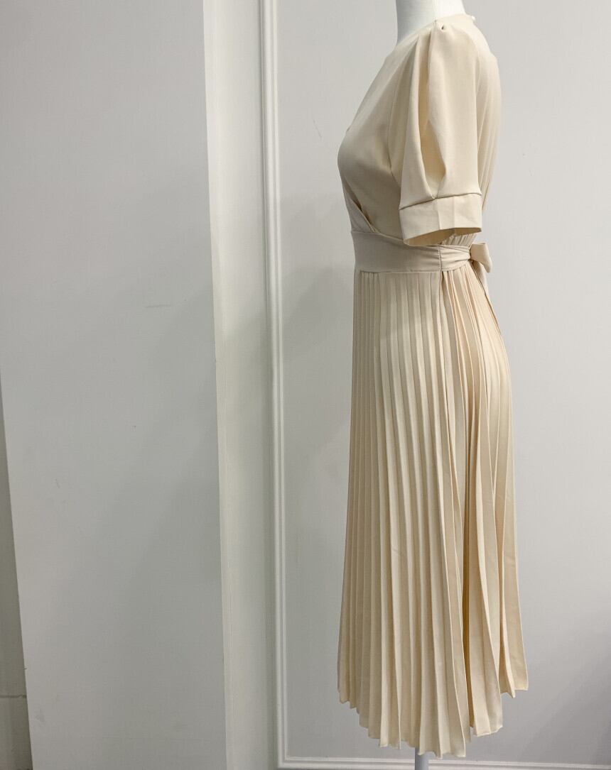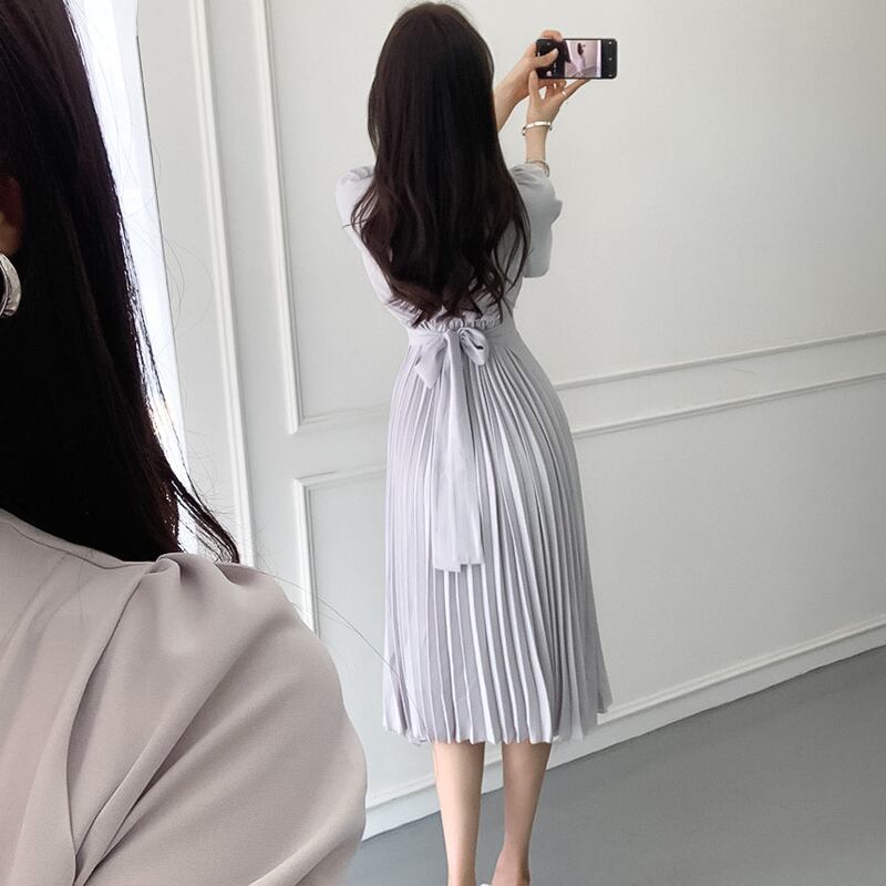 女性の夏のミディ Vestidos OL オフィス スリム ボディコン半袖プリーツ ドレス V ネック ウエスト ワーク ドレス ショート ハーフスリーブ サマー 夏物 Vネック 会社 学校 通勤や通学にも