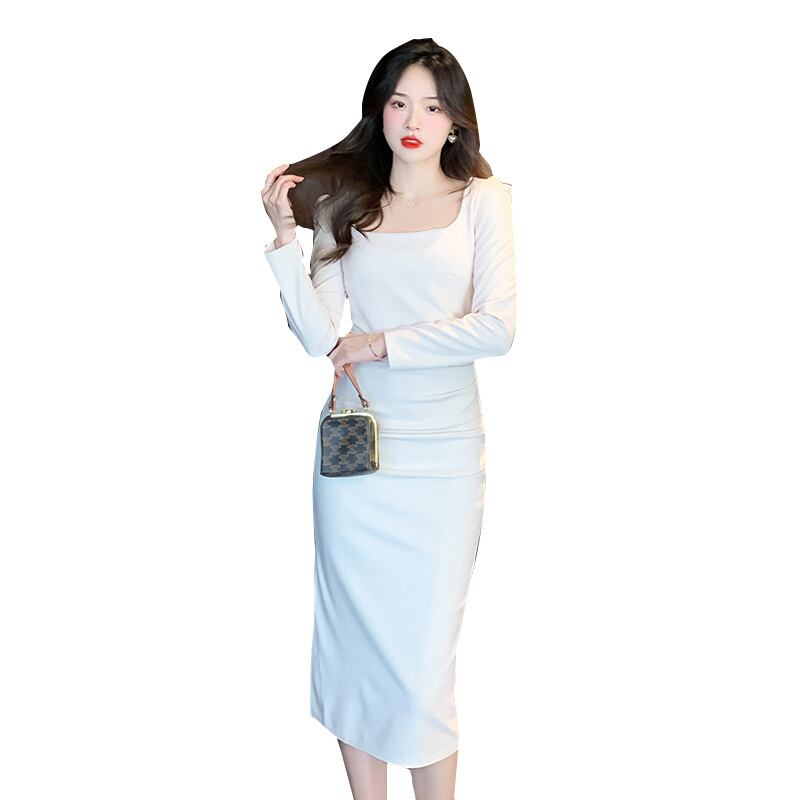 Y2k 春と Autunm ホワイトボディコン女性ドレスレトロ長袖スプリットミッドレングスドレス Vestidos ロング スプリング 春物