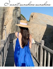 ブルールースビーチドレス夏セクシーな背中の開いたスリムシーサイドサスペンダードレス女性ロングドレス サマー 夏物