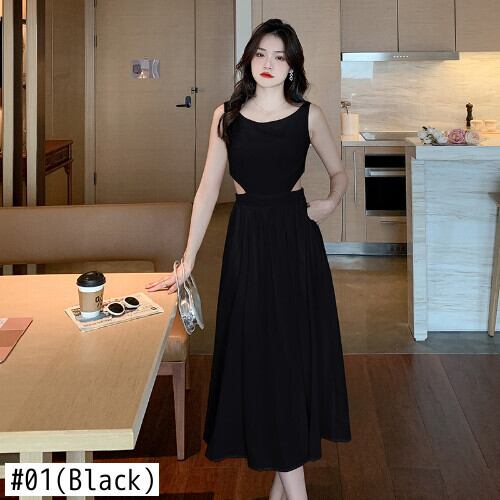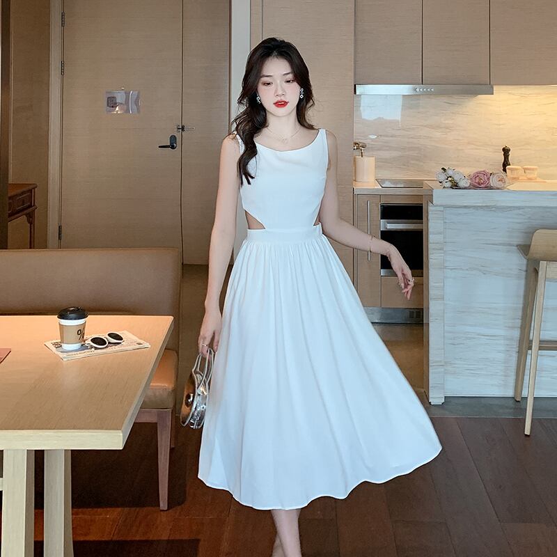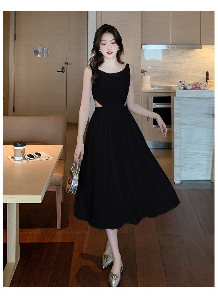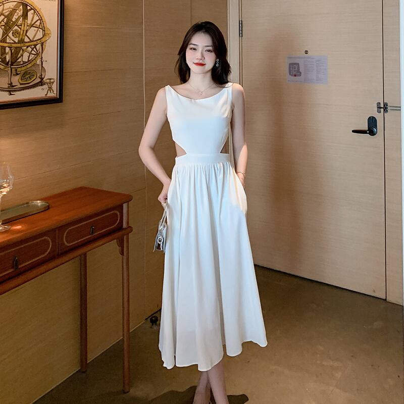 黒、白のシックな女性ドレス O ネックノースリーブ中空セクシーなドレスウエディング服 Vestidos ホワイト ブラック Oネック