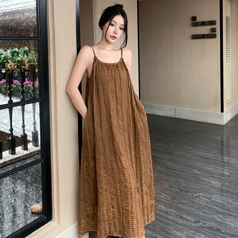 背中の開いたノースリーブビーチドレスの女性の夏のストリート緩いマキシドレスローブ Vestidos サマー 夏物