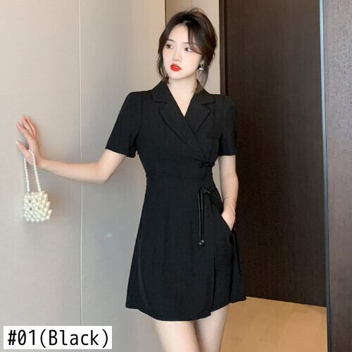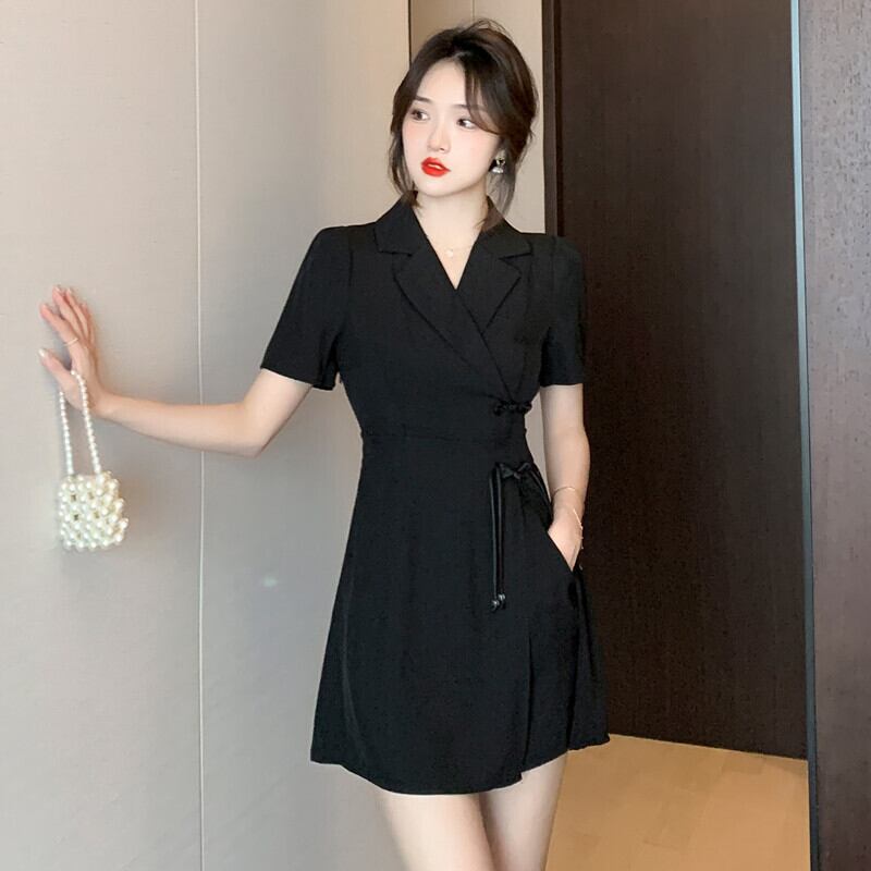 オフィスツーピーススーツ:レトロバックルターンダウンカラースプリットトップスブレザー+ショーツパンツ2ピースセットレディース衣装 ブルマー 会社 学校 通勤や通学にも