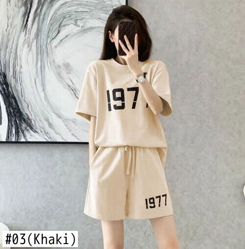 レディースツーピースセット:アウトドアティーンエイジガールズOネックTシャツ+伸縮性巾着ショートパンツセット レディース エラスティック
