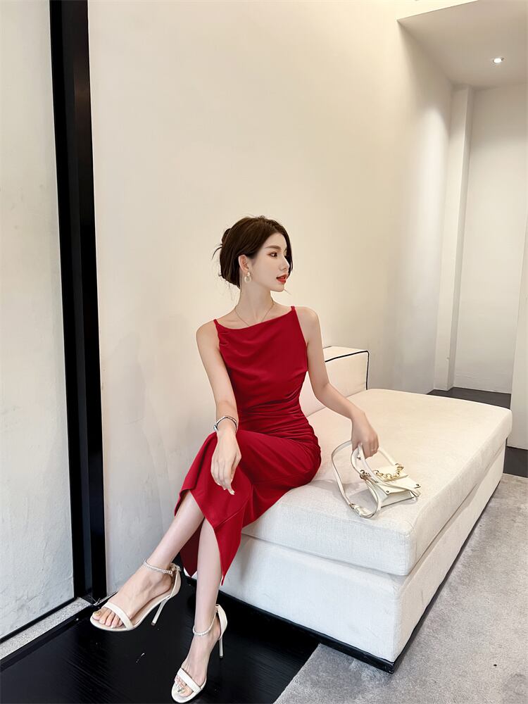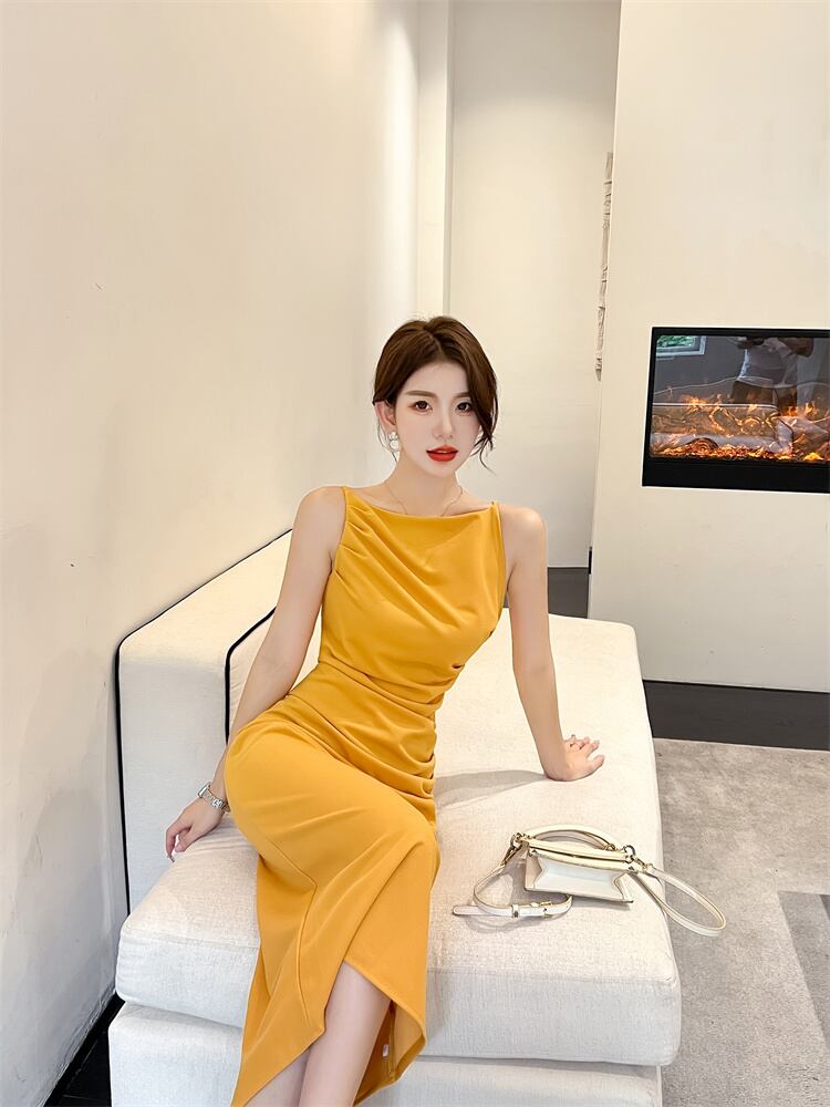 無地チュニックスリングワンショルダードレス夏スリムフィットノースリーブトレンドOLボディコンミディドレスパーティー サマー 夏物 ソリッドカラー