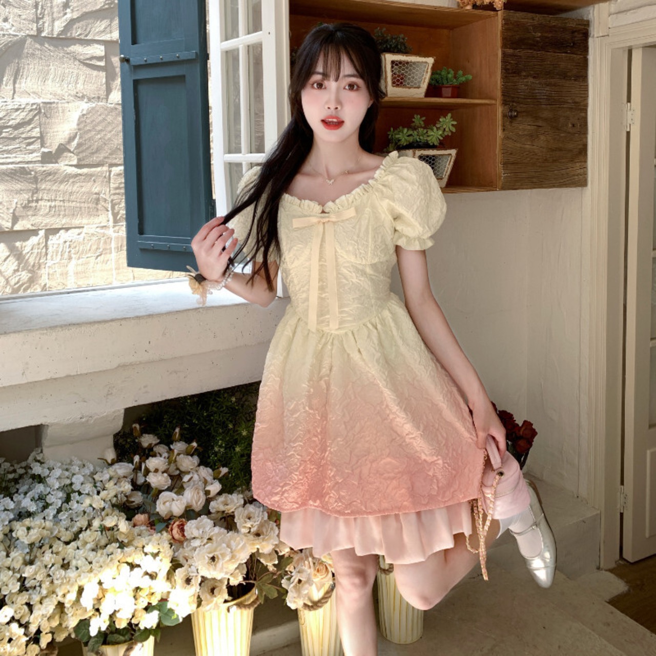 Y2K ese スタイル シックで甘いグラデーション ピンク ドレス サマー ワンショルダー チュニック パーティー ドレス M-4XL 大人ガーリー スウィート キュート カジュアル 夏物