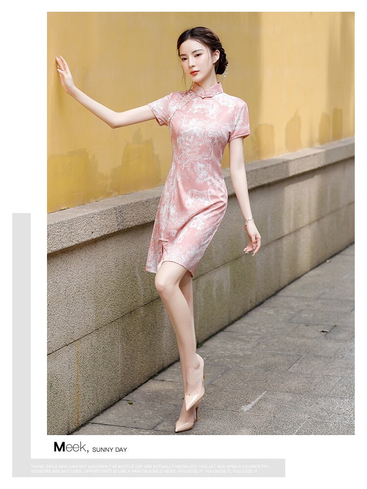 大きいサイズ ピンク プリント ルース 痩身 年齢 減少 ドレス 夏 中国風 改良された チャイナ ドレス 4xl 大きめサイズ サマー 夏物
