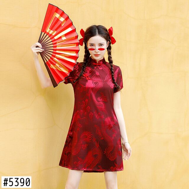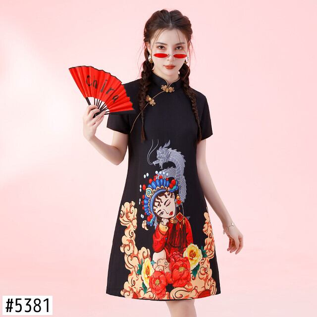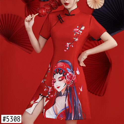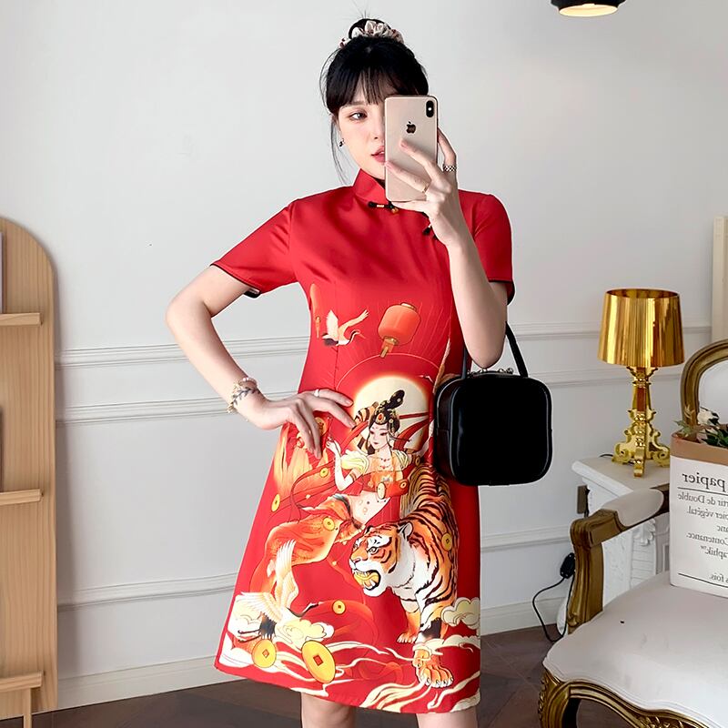 M-4XL 中国風改良されたチャイナドレスレトロスタンド Collor プリントスリムボディコン袍パーティードレス