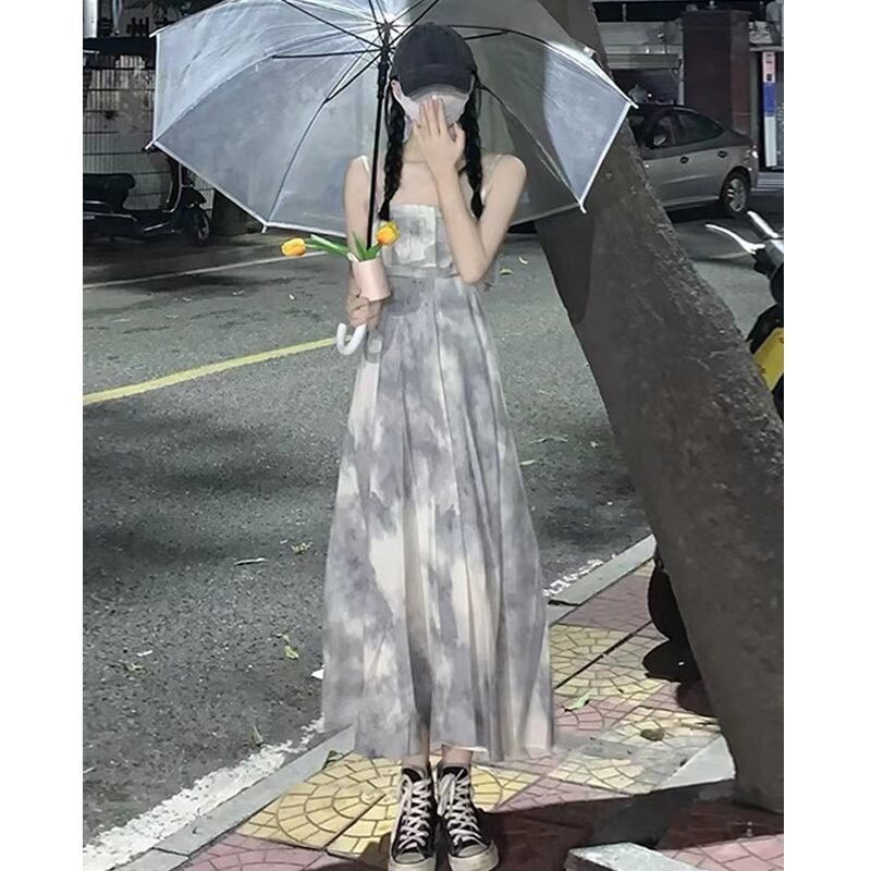 スリング インク チューブ トップ サスペンダー ドレス夏エンド ワンショルダー ティー フレンチ シーサイド バケーション ビーチ ロング ドレス サマー 夏物