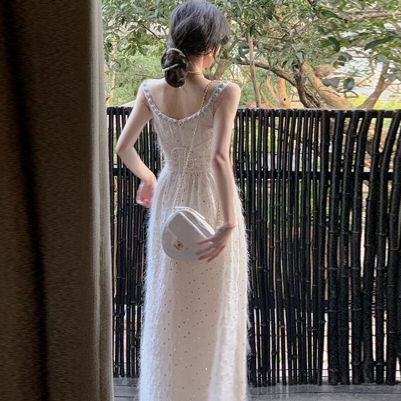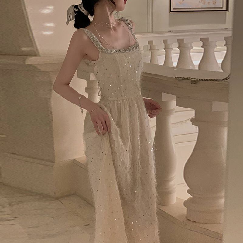 フレンチスタイルスパンコールパーティーウエディングドレス夏スクエアカラーシックとチュニックロングイブニングドレス サマー 夏物 スクウェア