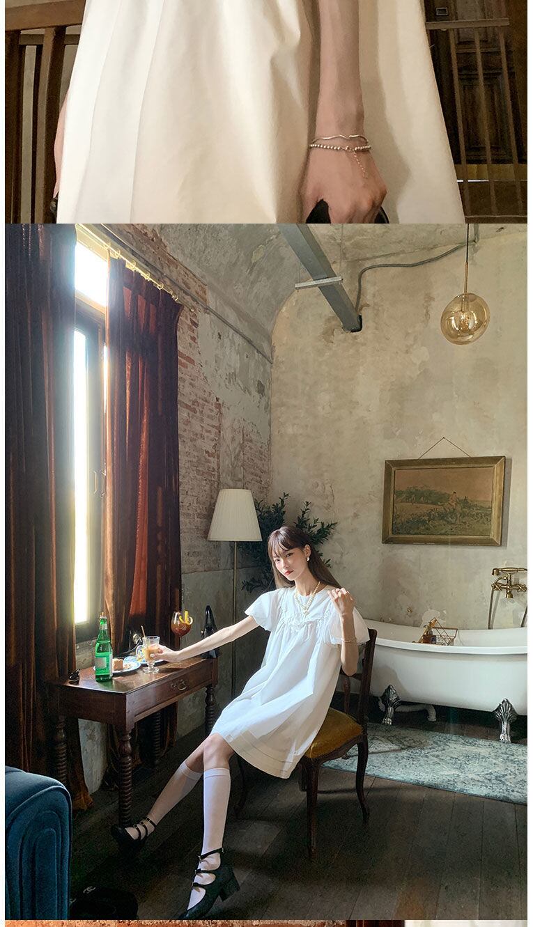 ese 白甘いミニシャツドレス Y2K 夏 O ネック花柄パッチワーク Y2K ルーズドレス ホワイト 大人ガーリー スウィート キュート カジュアル サマー 夏物 Oネック ソリッドカラー