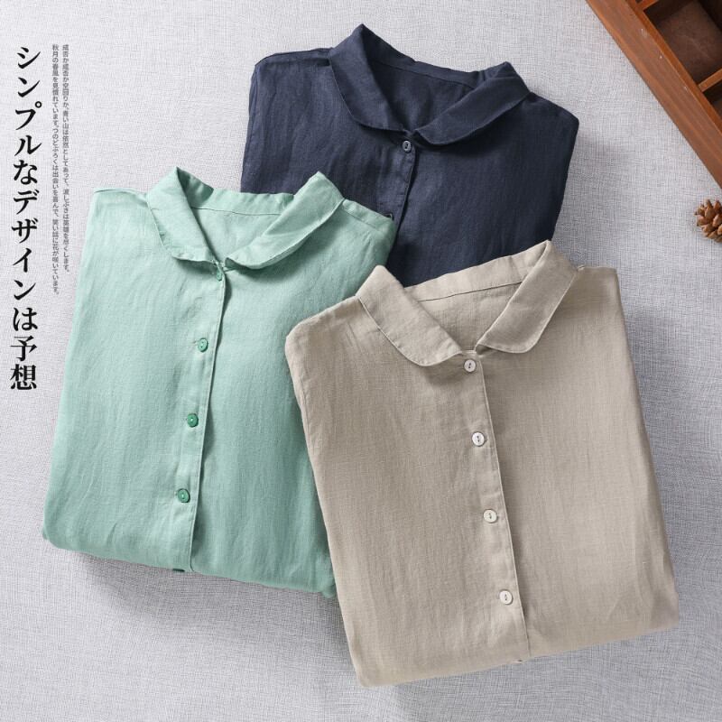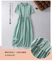 ルーズミディドレス綿とラインドレス夏ピーターパン襟オフィスレディシャツドレスドレス コットン サマー 夏物 ソリッドカラー 会社 学校 通勤や通学にも