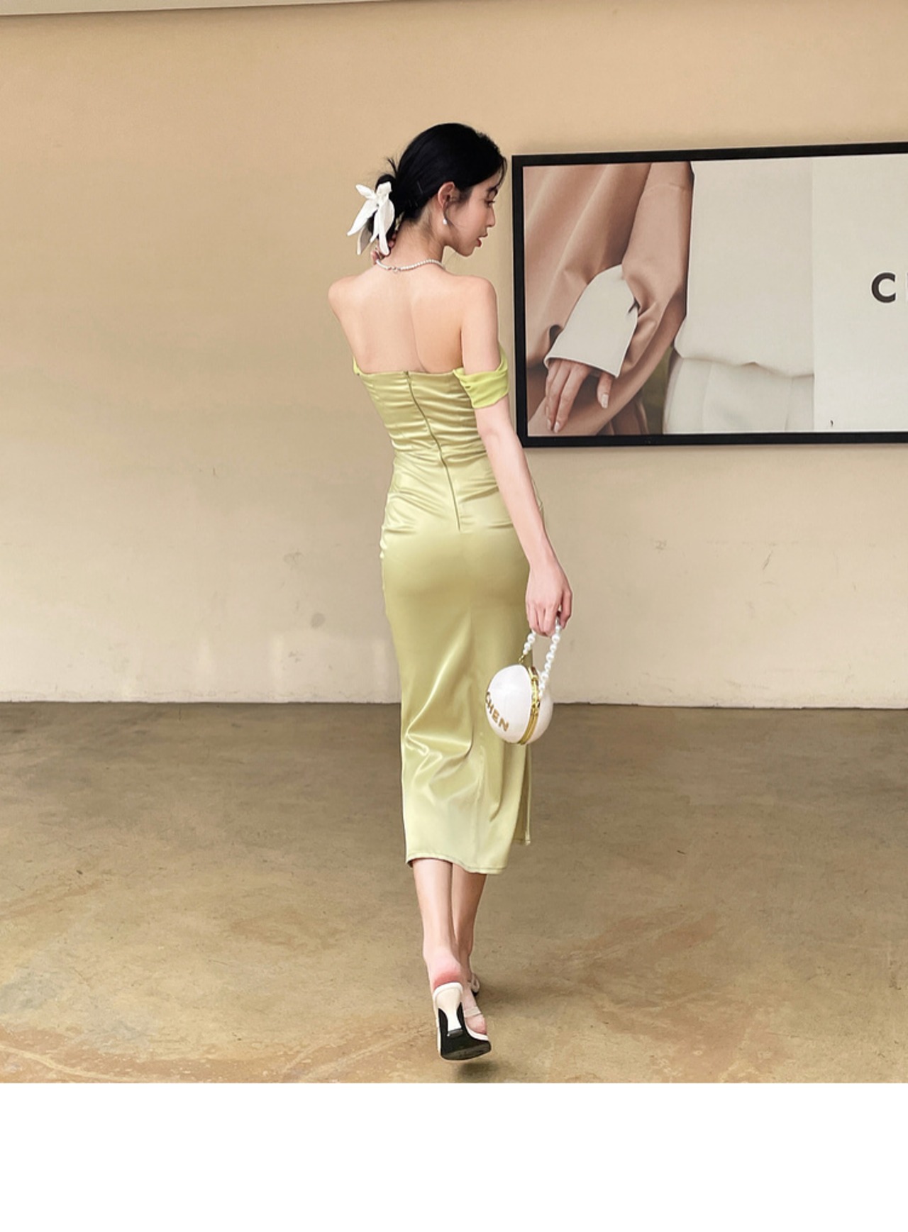 ソリッドカラーオフショルダーステインサスペンダードレス夏セクシー背中開いたスリムボディコンパーティーイブニングドレス サマー 夏物