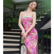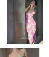 花柄サスペンダーパーティードレス夏スリムスリップミッドレングスイブニングパーティードレス プリント サマー 夏物