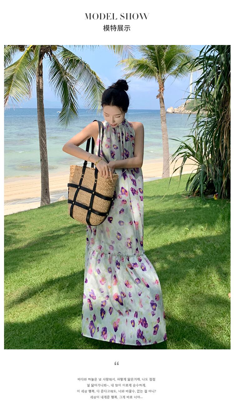 シックフリル裾花柄プリントロングビーチサンドレス夏緩い休暇滑走路マキシローブドレス サマー 夏物