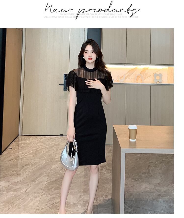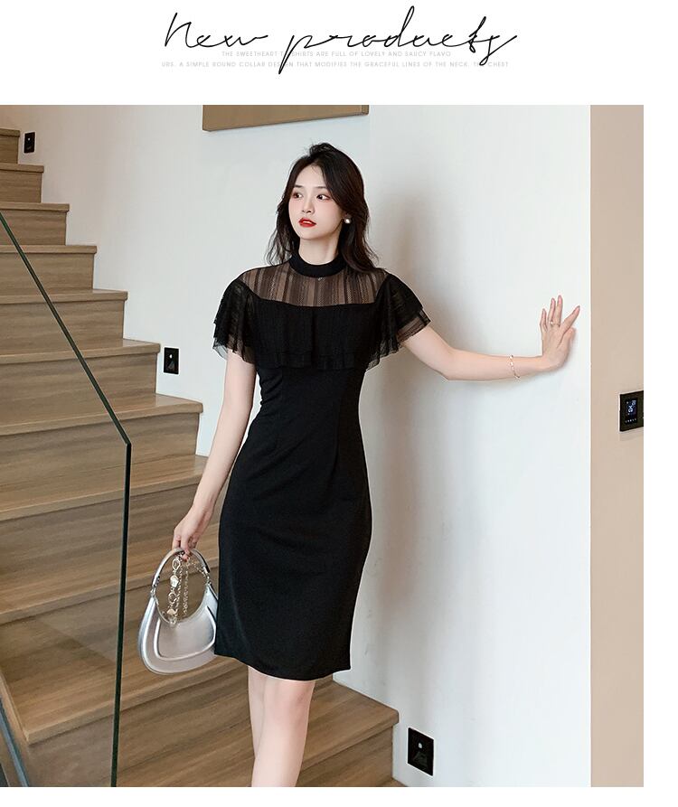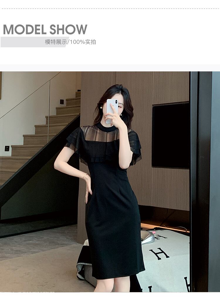 セレブセクシー中空レーススプライシングブラックドレス夏半袖スプリットローブ Elegabt パーティーウエディングドレス ショート ハーフスリーブ サマー 夏物