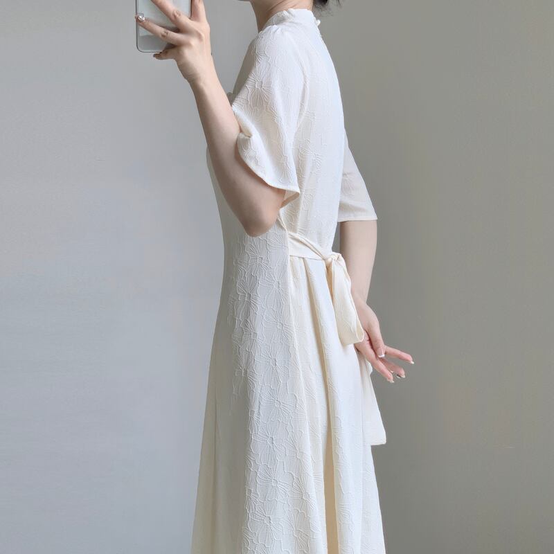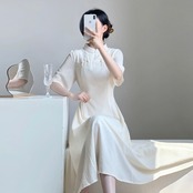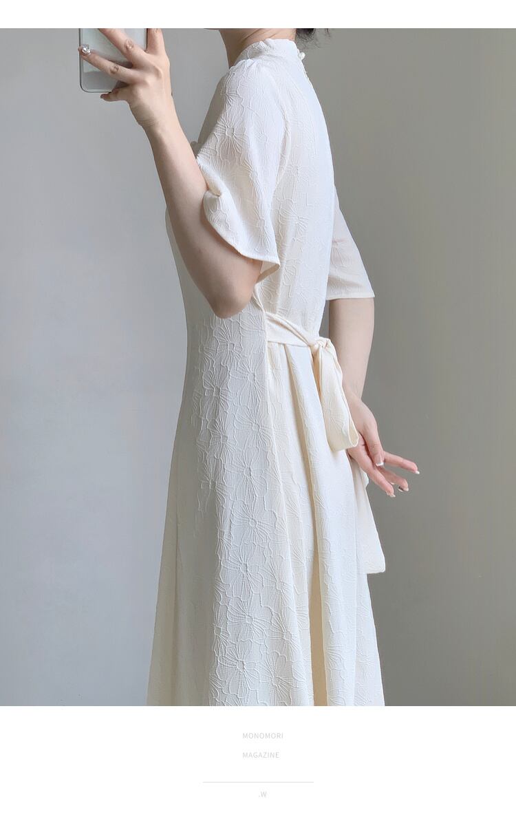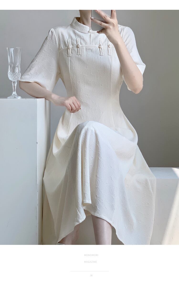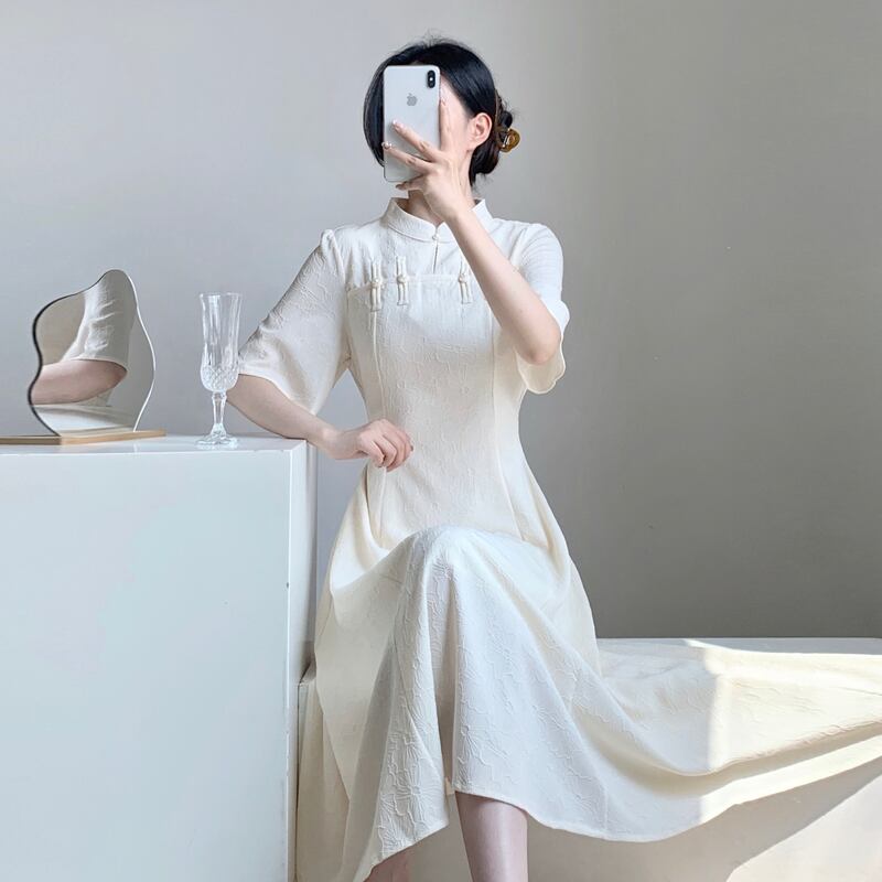 中国風修正されたチャイナジャカードドレスレトロスタンドカラーランタンスリーブレディスリムパーティーウエディングドレス