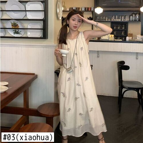 Clic ラウンドネック花柄プリント簡素化ミディドレス夏ノースリーブプリーツルーズドレス サマー 夏物 Oネック