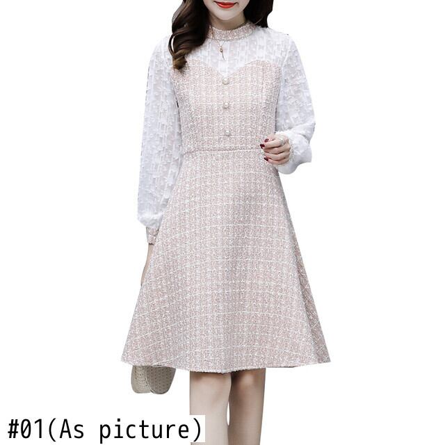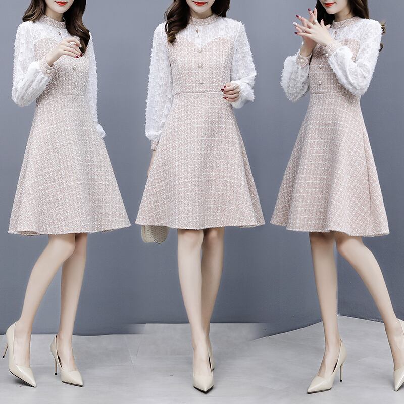 シックとステッチパールバックルパーティーミニドレス秋長袖スリムチュニックウールドレス ロング オータム 秋物 真珠