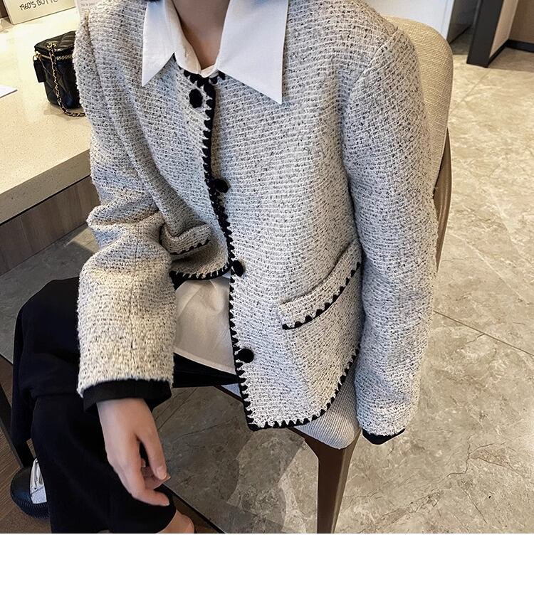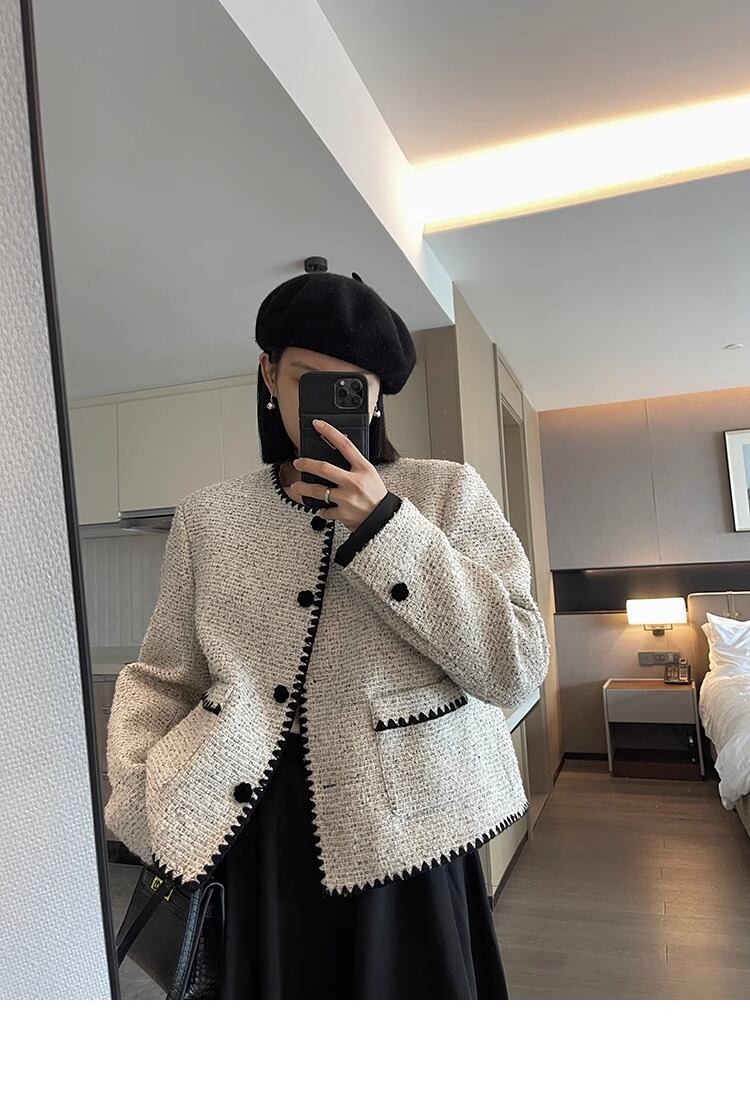 クロップドツイードジャケットショートコート秋冬オフィスレディストリートアウタートップス オータム 秋物 ウィンター 冬物 会社 学校 通勤や通学にも
