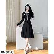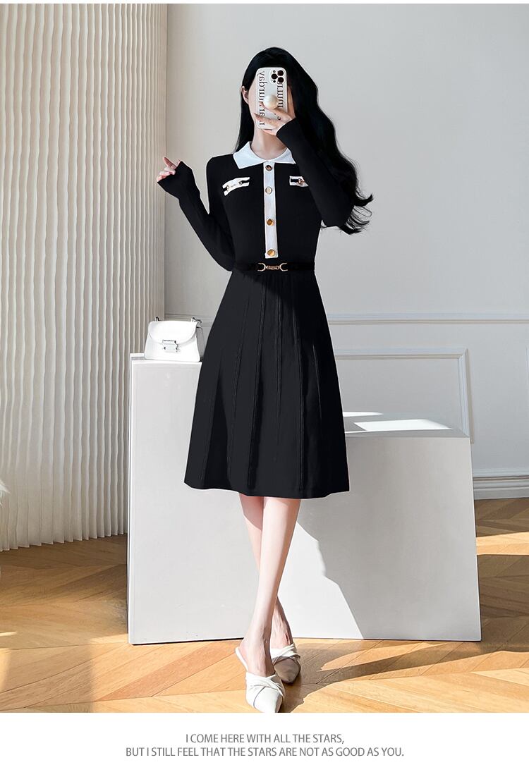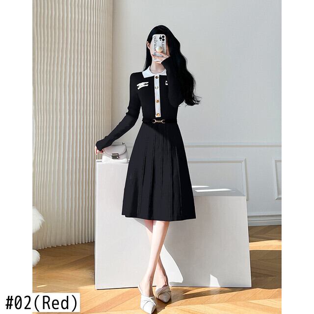Clic ラペル襟アイスニットセータードレス春秋オフィススリムミディドレス スプリング 春物 オータム 秋物 シルク 会社 学校 通勤や通学にも