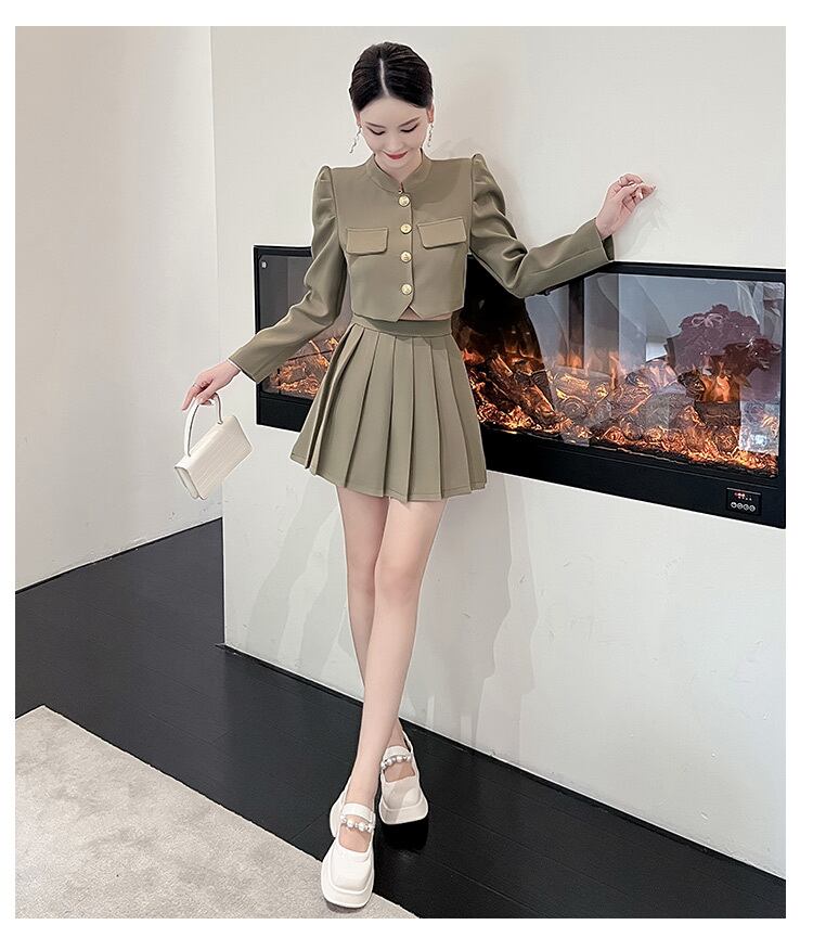 気質ツーピースセット衣装春秋 Y2K 長袖スーツジャケットウエストプリーツスカート 2 個セット ロング スプリング 春物 オータム 秋物