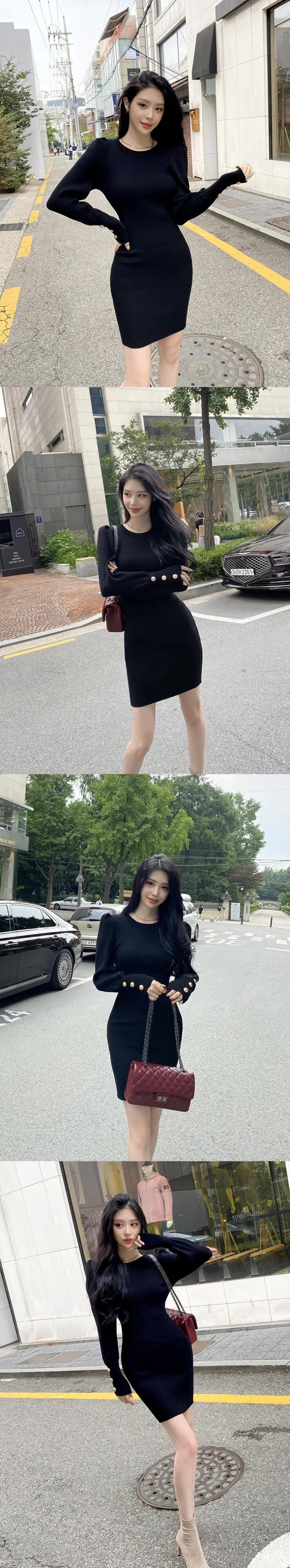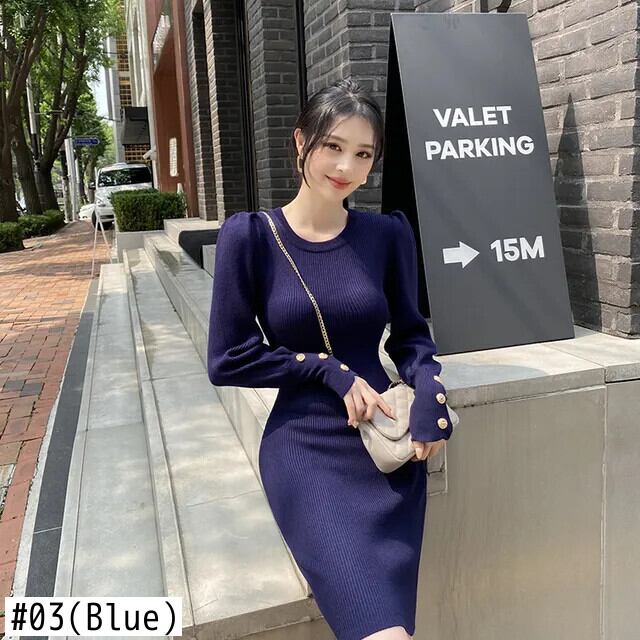 パフスリーブニットベーシック Allmacthed セータードレス O ネック長袖セクシースリムボディコンミニドレス ロング Oネック ソリッドカラー