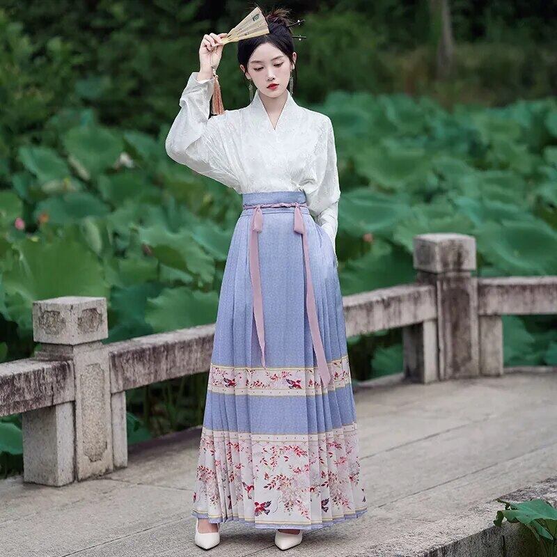 中国伝統的韓-末明王朝絶妙ゴールド織り刺繍馬スカートスリムロングスカート