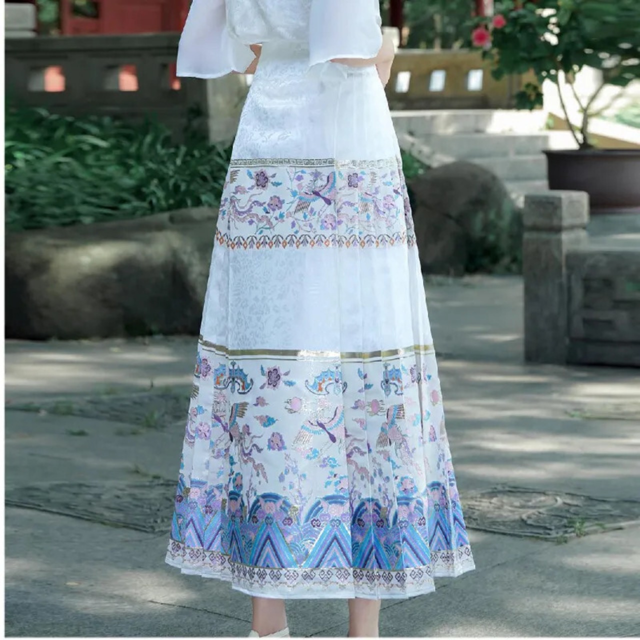 ホワイト明朝絶妙ゴールド織り刺繍馬スカートエンド中国改良漢ジャカードロングスカート