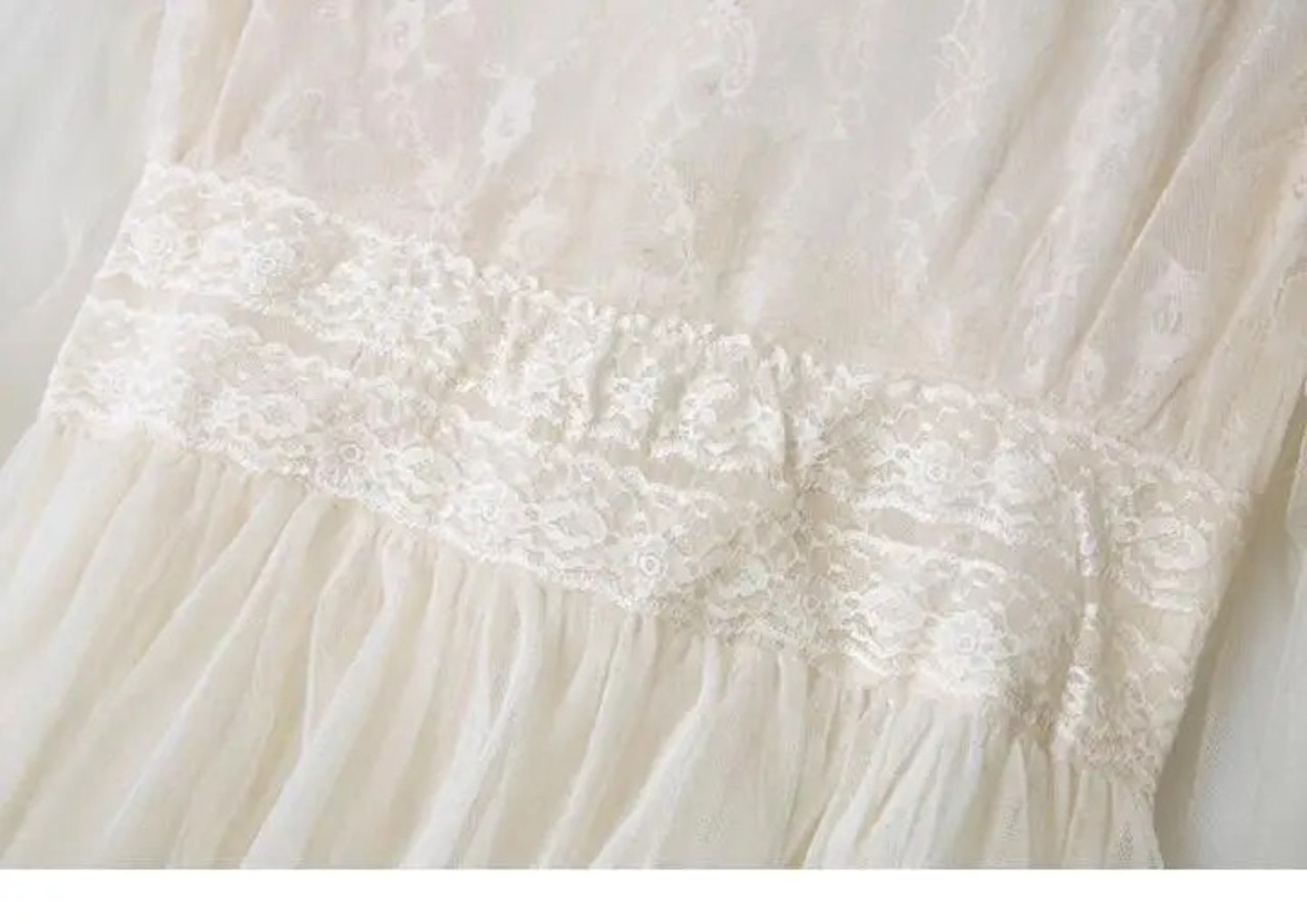 レースパッチワークメッシュウエストロングドレス夏パフスリーブ V ネックフレンチパーティースリムドレス Vestidos サマー 夏物 Vネック