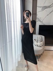 三宅プリーツブラックスリムチュニックパーティードレス半袖ラウンドネックウエディング Badycon ドレス ショート ハーフスリーブ Oネック
