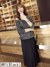 スタイルニット 2 点セット衣装: ラウンドネックルーズニットトップ + 黒ベストロングドレス 2 個セット ブラック Oネック