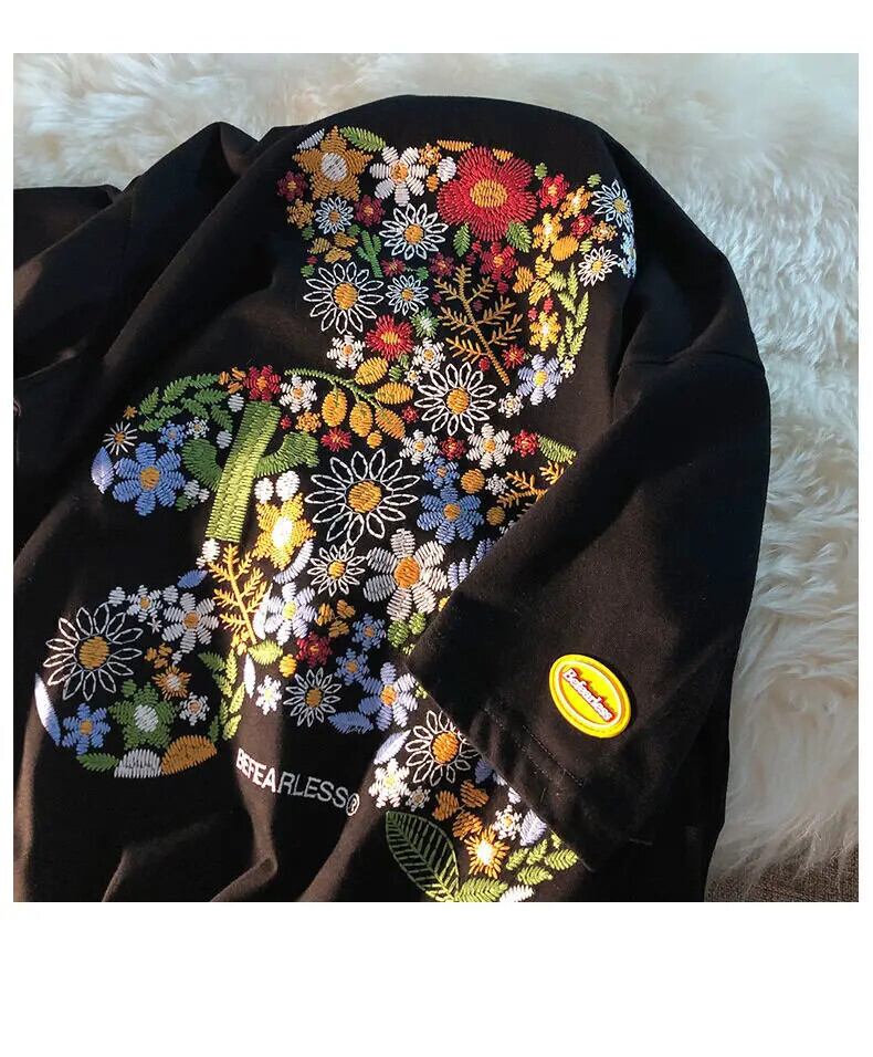 白かわいいクマ刺繍ミニマリスト Tシャツ Tシャツ夏ラウンドネック半袖トップ Y2K Tシャツ ショート ホワイト ハーフスリーブ 大人ガーリー スウィート キュート カジュアル サマー 夏物 Oネック