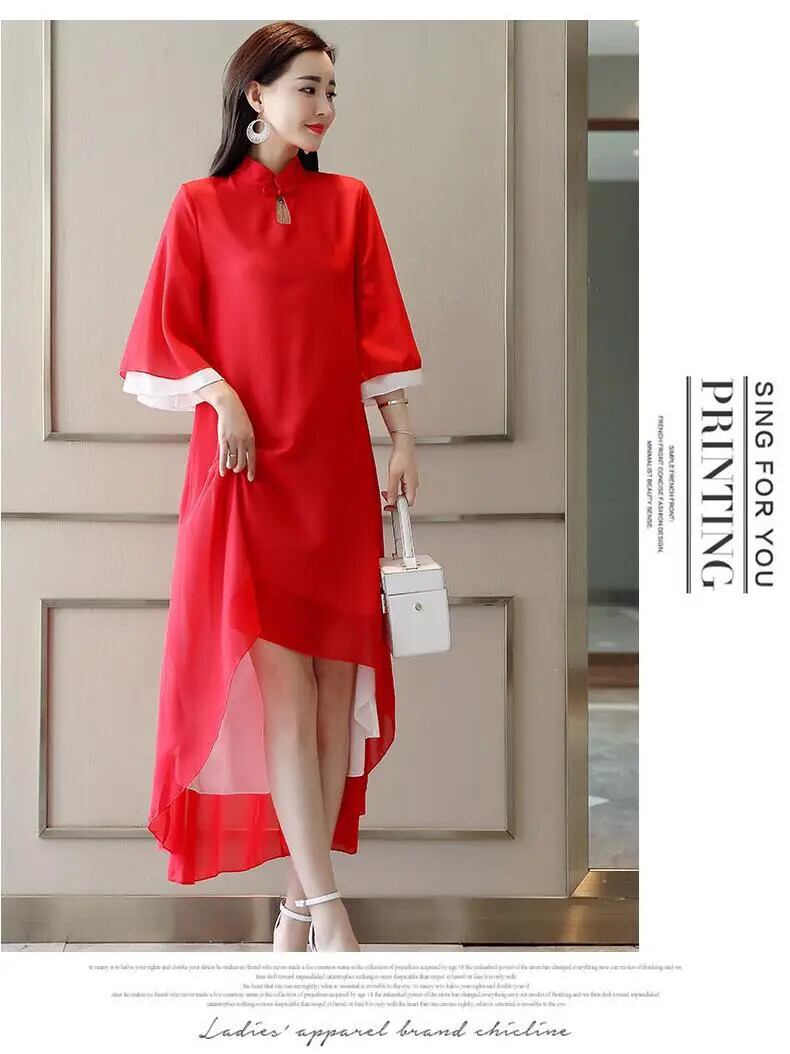 伝統的ベトナムアオザイスーツロングチャイナドレスチャイナオリエンタルドレスパーティー袍アオザイ赤白パンツセット ホワイト レッド