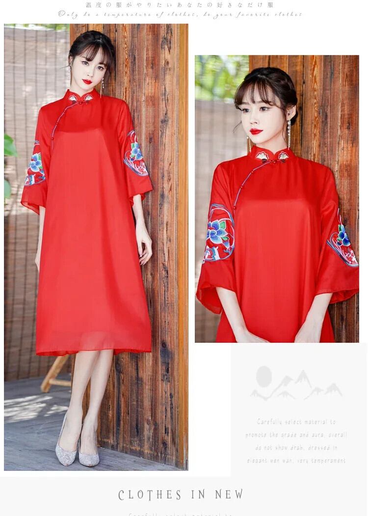 レトロスタンドカラー刺繍改良されたチャイナドレス秋中国風ルーズ膝丈ドレス オータム 秋物