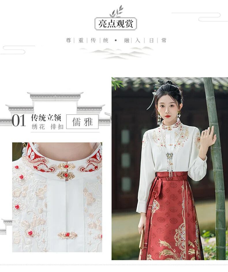 中国風絶妙刺繍ビーズ韓トップレトロスタンドカラー長袖ホワイトゴールドボタンパーティーシャツ ロング レッド