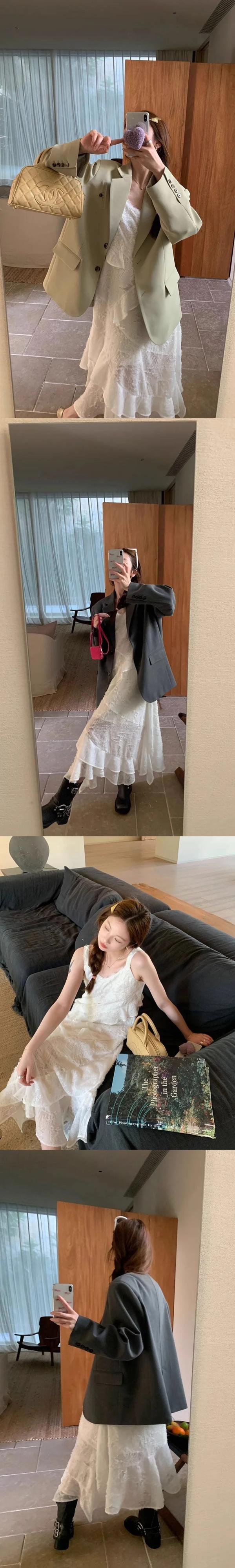 不規則レーススプライシングケーキドレス 2024 春と夏 Y2K スクエアネックノースリーブサスペンダーロングドレス スプリング 春物 サマー 夏物 スクウェア