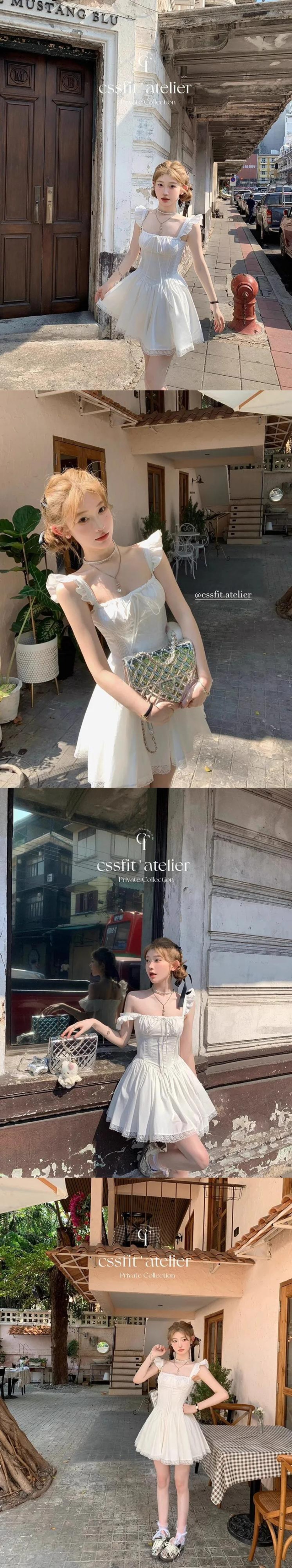 Y2K 甘いスリム A ラインミニパーティードレスホワイトレースアップホリデードレススパゲッティストラップ夏 大人ガーリー スウィート キュート カジュアル サマー 夏物 Aライン