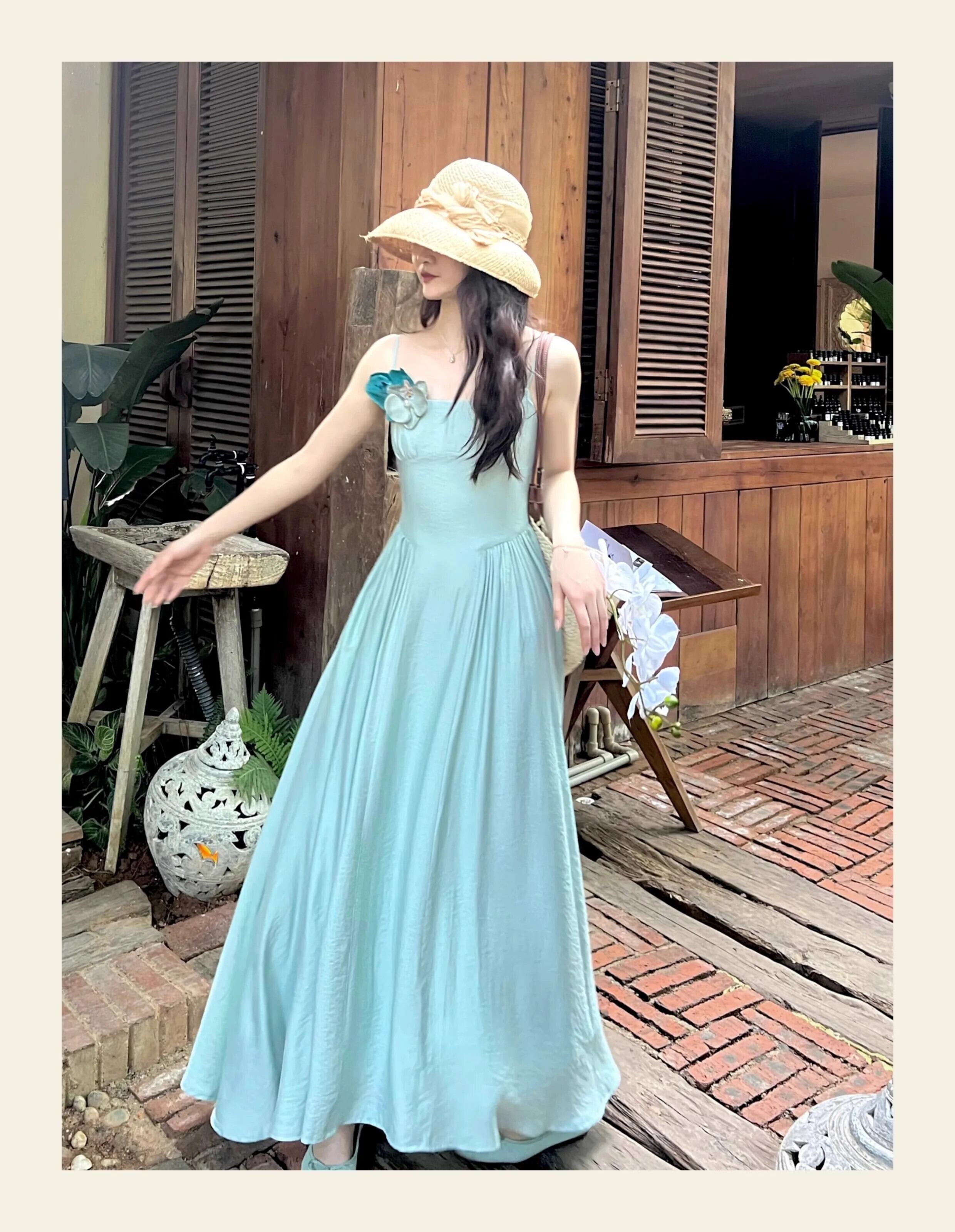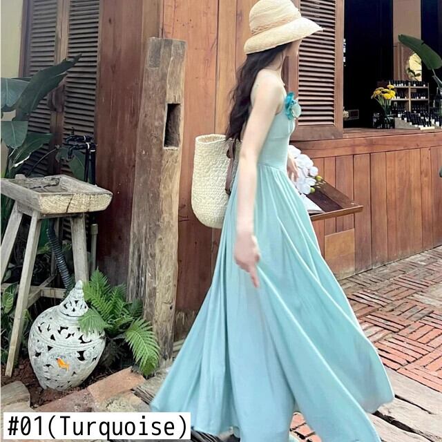シックで甘い無地ワイドヘムロングパーティードレス 2024 夏スクエアネックスリムチュニックホリデーマキシドレス 大人ガーリー スウィート キュート カジュアル サマー 夏物 ソリッドカラー スクウェア